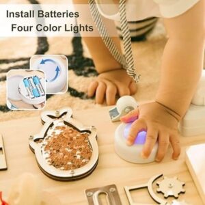 The board includes a variety of engaging elements like locks, latches, gears, switches, and textured shapes. These activities help stimulate your child’s curiosity while improving hand-eye coordination, fine motor skills, and problem-solving abilities.