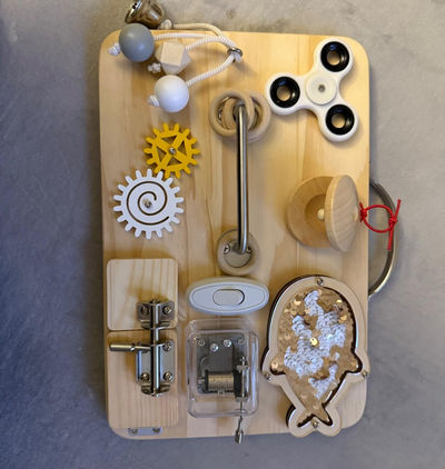 I mean it’s a very cute board. Love the fish with the sequins. The light switch is satisfying and the fidget spinners great. But, the music box is horrifying.
