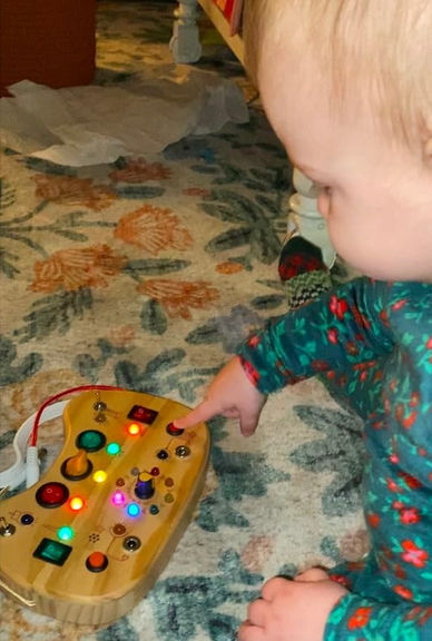 This is perfect for my granddaughter, who is a toddler. When I received it, it was much nicer than expected! The board is chock full of many kinds of switches and lights. Each switch operates a matching LED light. There are rocker switches, push button switches, toggle switches and rotary switches. It teaches children cause and effect relationships between flipping the switches and the seeing which lights they control. This toy also provides opportunities for parent – child interactions