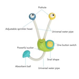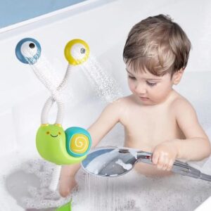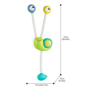 Fun snail-shaped baby bath toy with double sprinkler, 360° rotation, and waterproof pump. Safe, engaging bath time toy for toddlers 18 months+.
