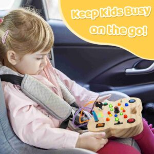 Kids Montessori Busy Board with LED Light Switch Wooden Joystick and Light-Up Sensory Toys