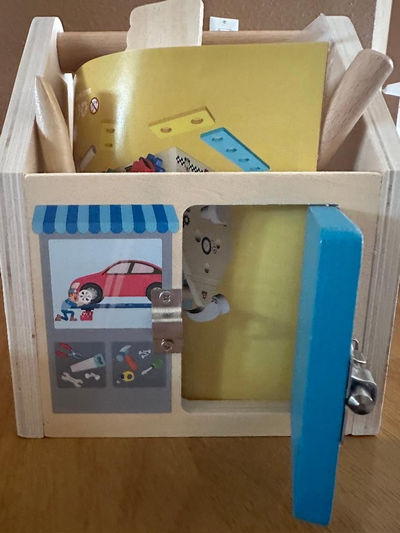 My 3 year old grandson loves this! He enjoys the variety of screws, not to mention that this has real tools. He really enjoys that over his pretend Tools and screwdrivers. Plus, the lock was a little challenging, which is great for learning. Overall, this was a great purchase and I’m so happy my grandson is entertained playing with this fun toy.