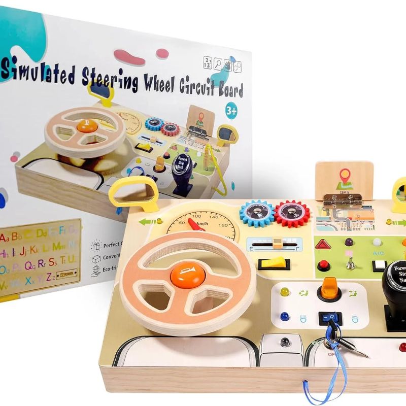Bring imaginative play to life with our interactive personalised busy board for 2 years old, designed as a fun and educational steering wheel activity toy. This Montessori-inspired board lets children explore the excitement of driving while building essential developmental skills.
