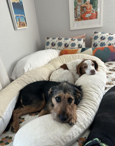 Obsessed with this pregnancy pillow! It’s so perfect for keeping me on my side during the night. My dogs love it too